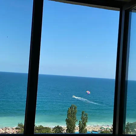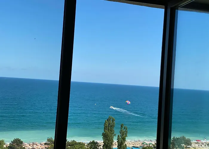 Просторен апартамент с гледка към морето, на 100 метра от плажа се намира в Златни пясъци, на 2,8 км от плаж Ривиера, и предлага на гостите басейн и фитнес студио. Апартаментът осигурява бърз достъп до плаж Нирвана, на около 5 минути с кола.